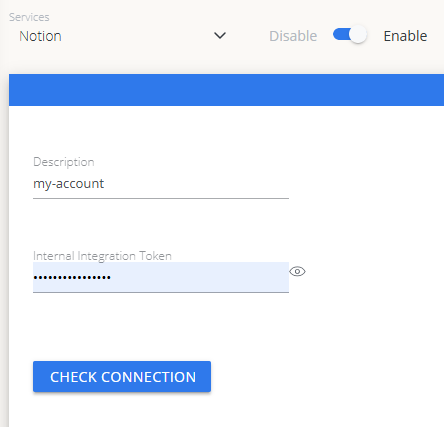 - Add Credentials: In the OpenLM Cloud Broker dashboard, find the Notion integration and enter the API token.