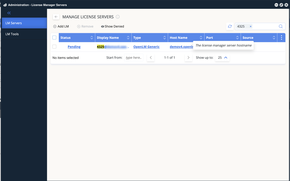 Double-click the pending Infor SLM entry. It will be displayed as OpenLM Generic.