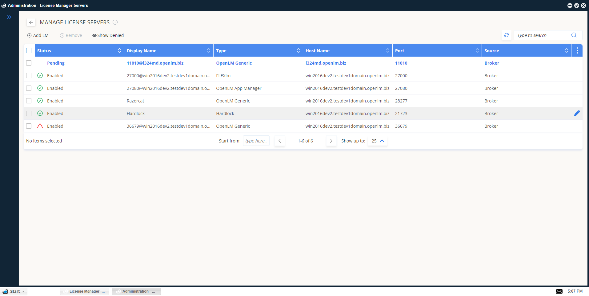 - Open EasyAdmin (Start → Widgets → License Manager - Servers).