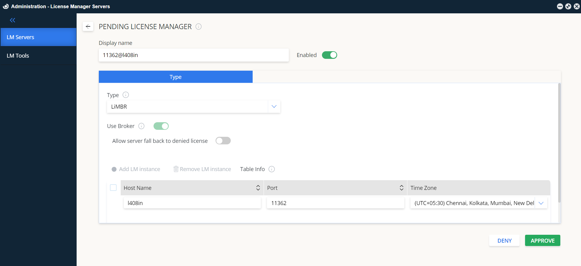 http://<OpenLM Server FQDN>:5015or via Windows Start → OpenLM → OpenLM EasyAdmin User Interface). - In License Manager Servers, approve the new LiMBR entry.