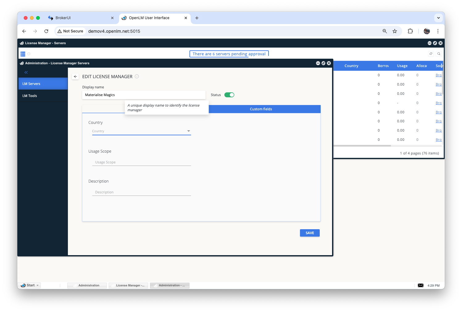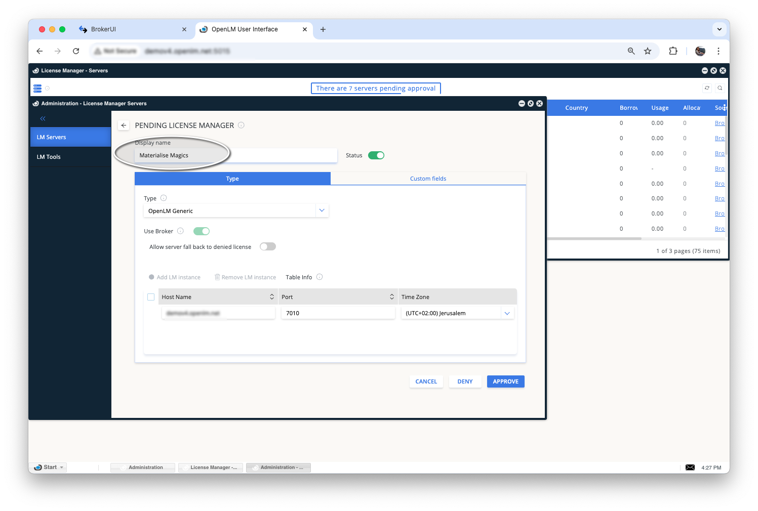 OpenLM Broker configured to connect to the Materialise Magics license manager