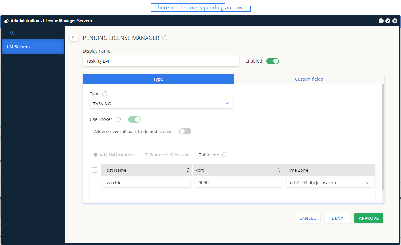 1. Open EasyAdmin (Start → Widgets → License Manager Servers).