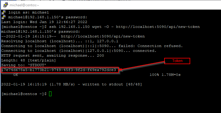 The commands below can be used to get a token from a command line remotely.