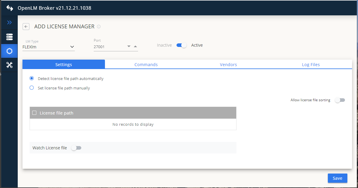 - In the License Managers screen, you can see and add your license managers.