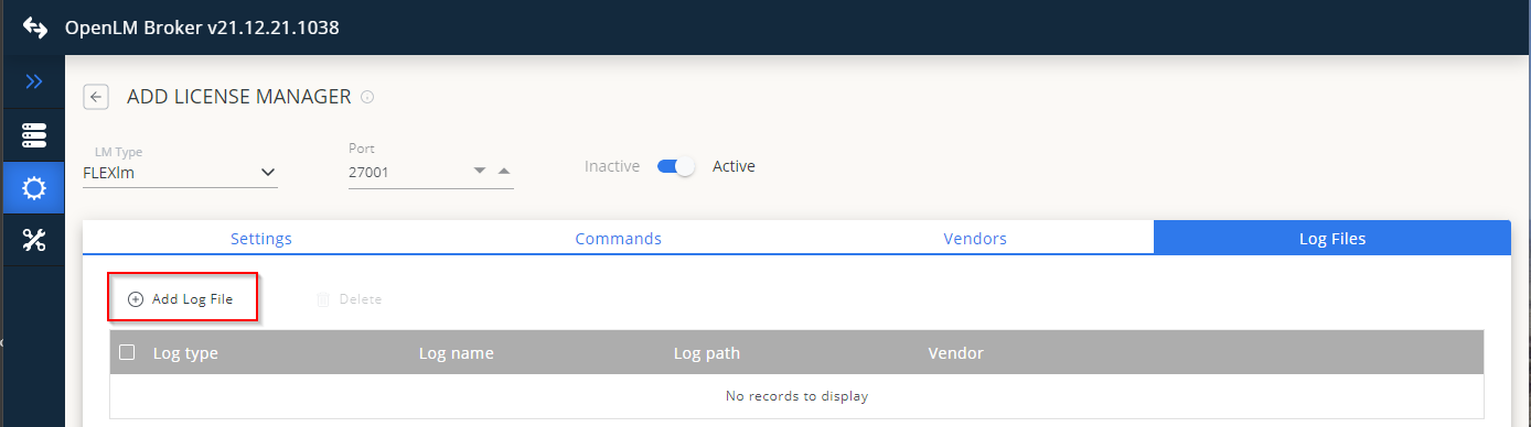 - Click Add License Manager.