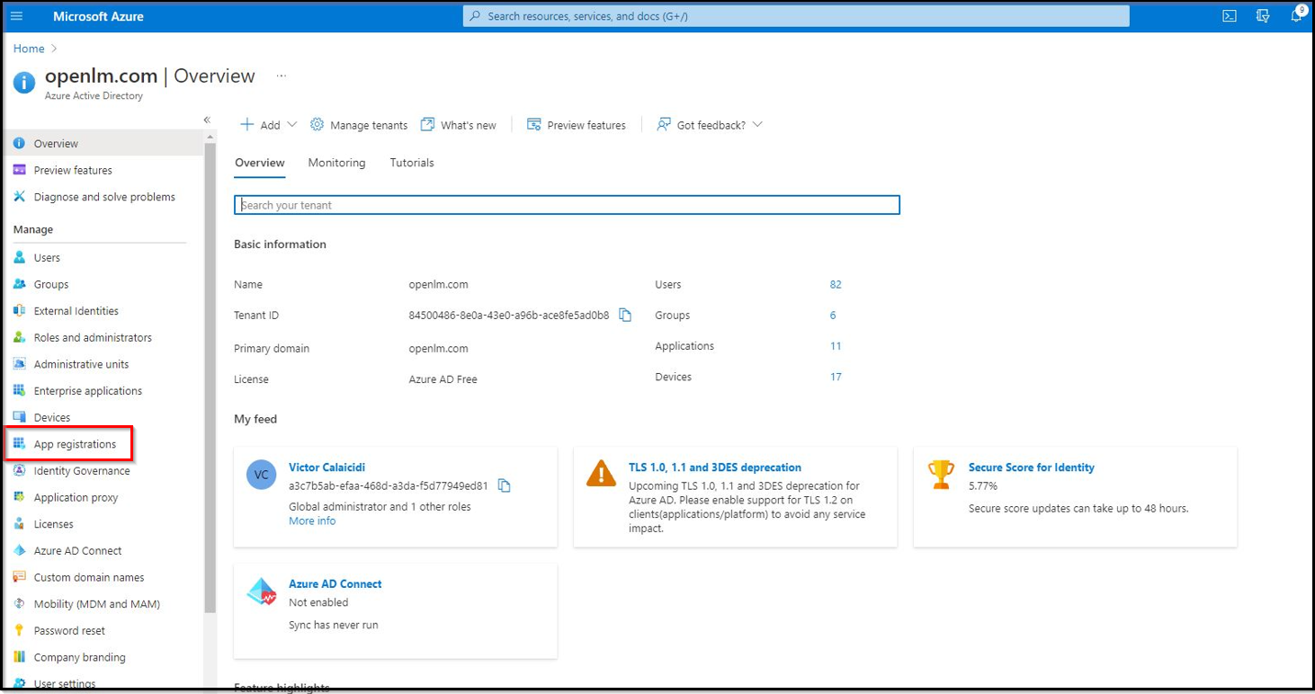 Integration between Azure Active Directory and OpenLM