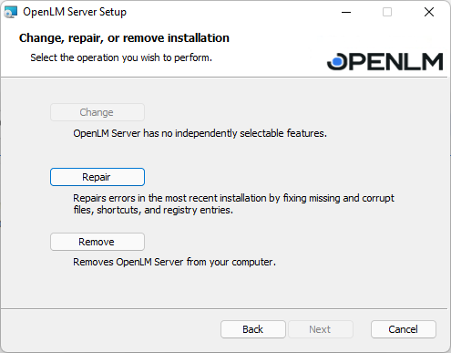 - Select "Repair OpenLM" and click "Next" to proceed.
