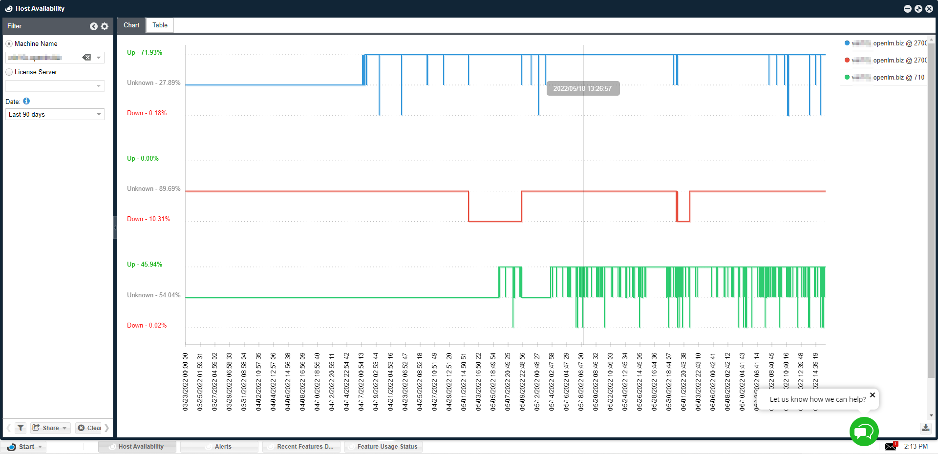 A popular widget with many customers is this Green-To-Red license utilization presentation of specified monitored features.