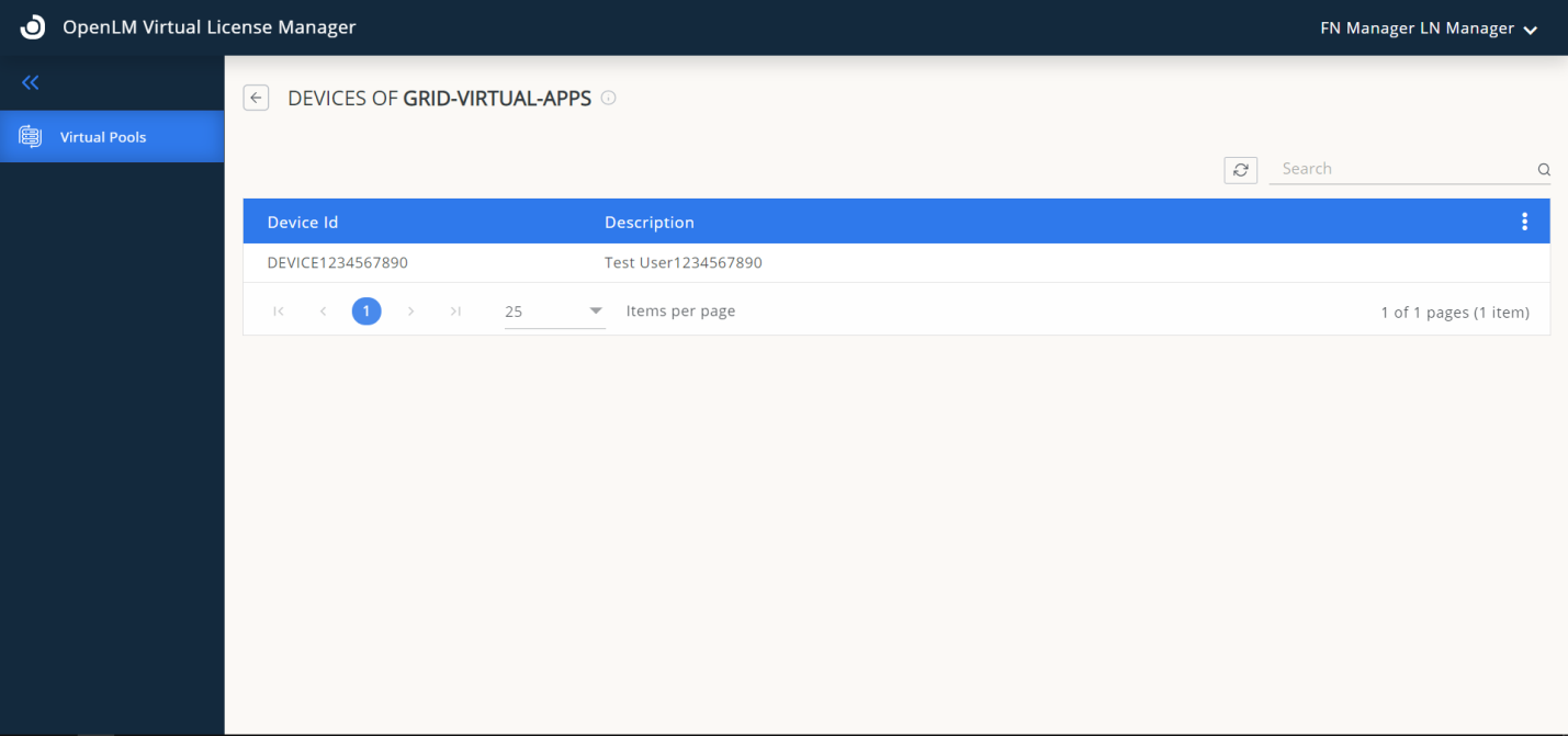 • Manage allocations: Managers can access a special page by clicking on the number of Device IDs in the Virtual Pool feature.