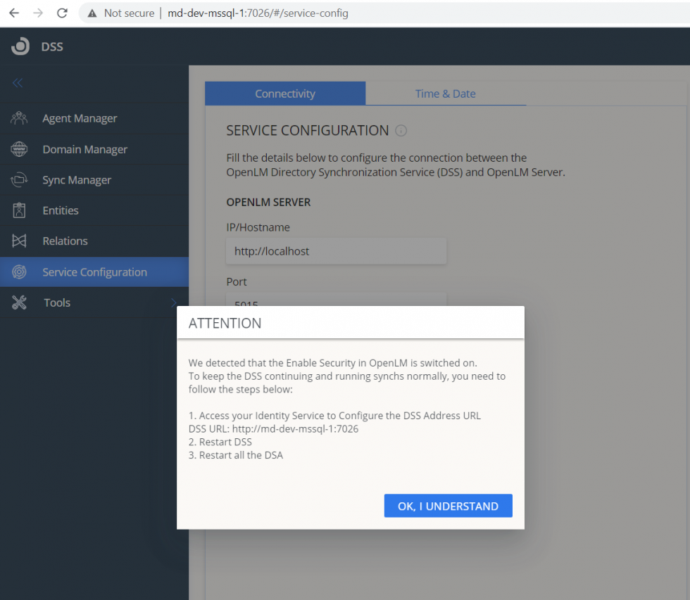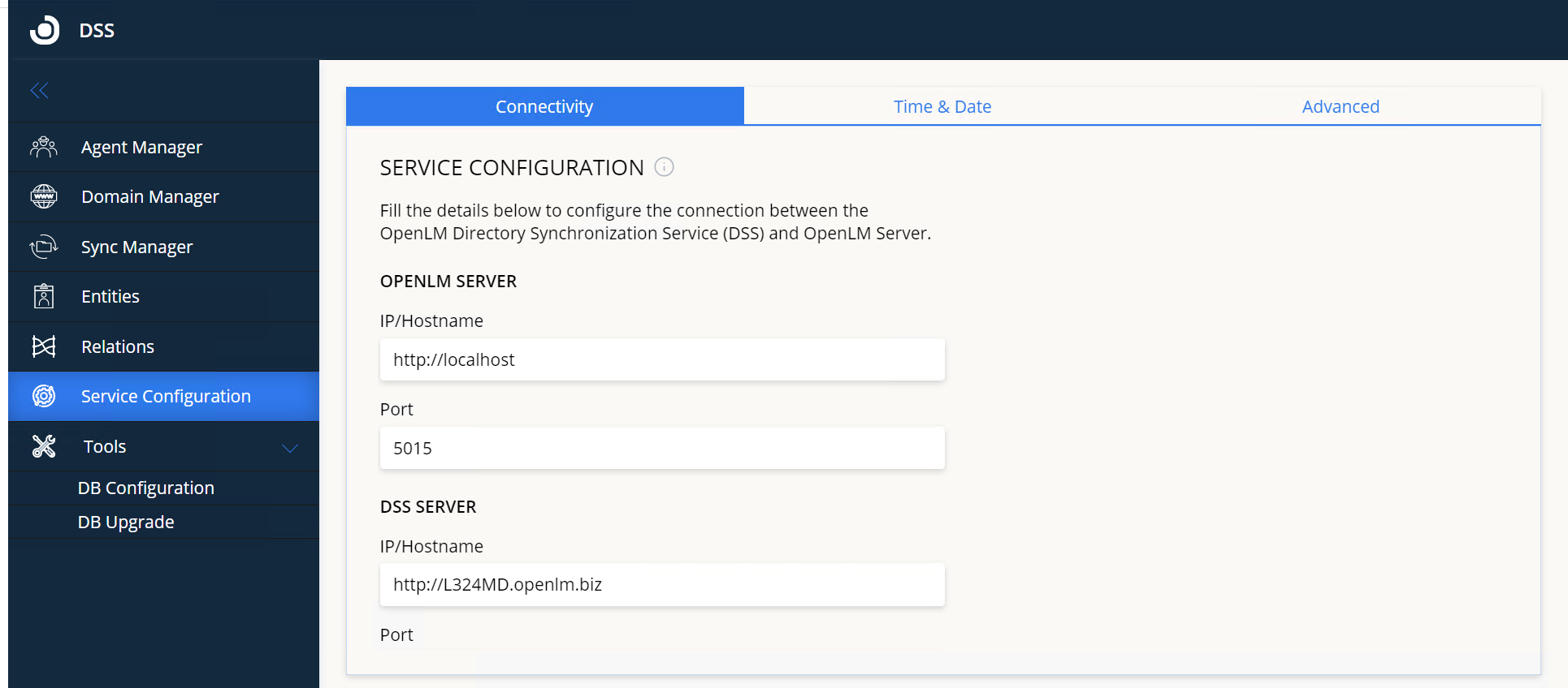 - Port - the port through which the DSS UI is served (default: 7026). By default, this field is read-only. To change, edit kestrel.config in C:Program FilesOpenLMOpenLM Directory Synchronization Service Service and restart the DSS Service.