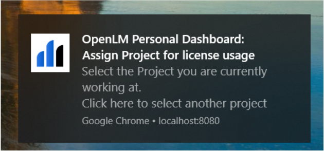 As stated above, OpenLM can attribute license usage according to active projects. The end-user may create an active project name or be prompted to select the active project from a dropdown list.
