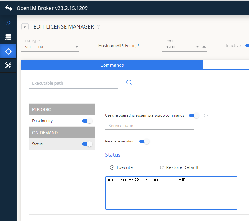 3. Go to the Commands node and set the path to utnm.exe on the SEH dongle host.