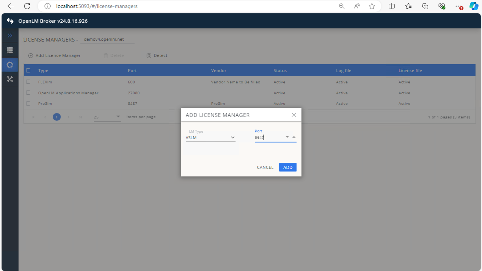 Follow these steps to configure OpenLM to monitor license usage and retrieve statistics from the Kisters VSLM License Manager.