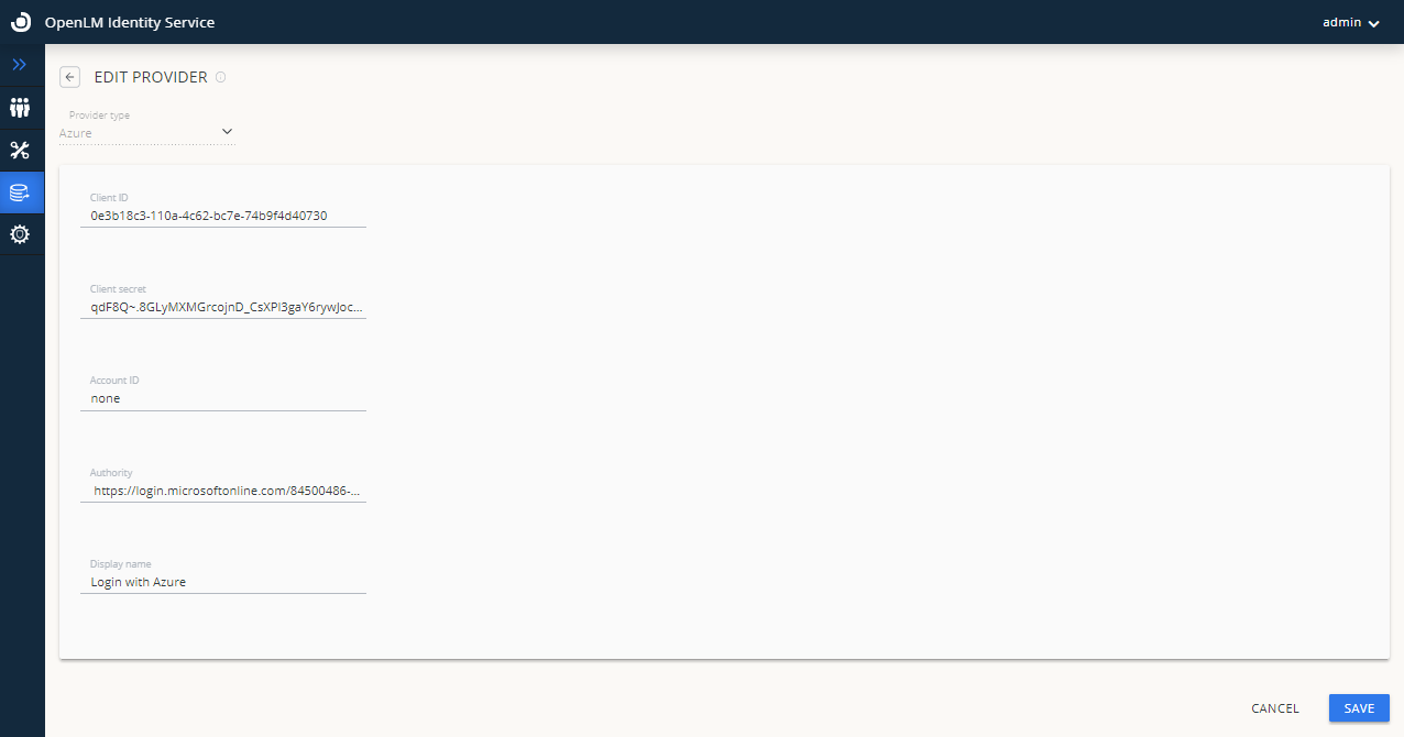 To add the external provider (Azure) in the OpenLM Identity Service, make sure the OpenLM SLM and Identity Service are SSL secured