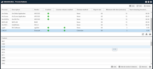 2. Click EasyAdmin Start → Administration → Process Features. The Process Features window opens: