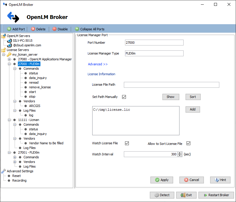 The OpenLM Broker needs to access the FlexLM license file on the license manager of interest. Please refer to the paragraph "LICENSE MANAGER PORT; ADVANCED" .