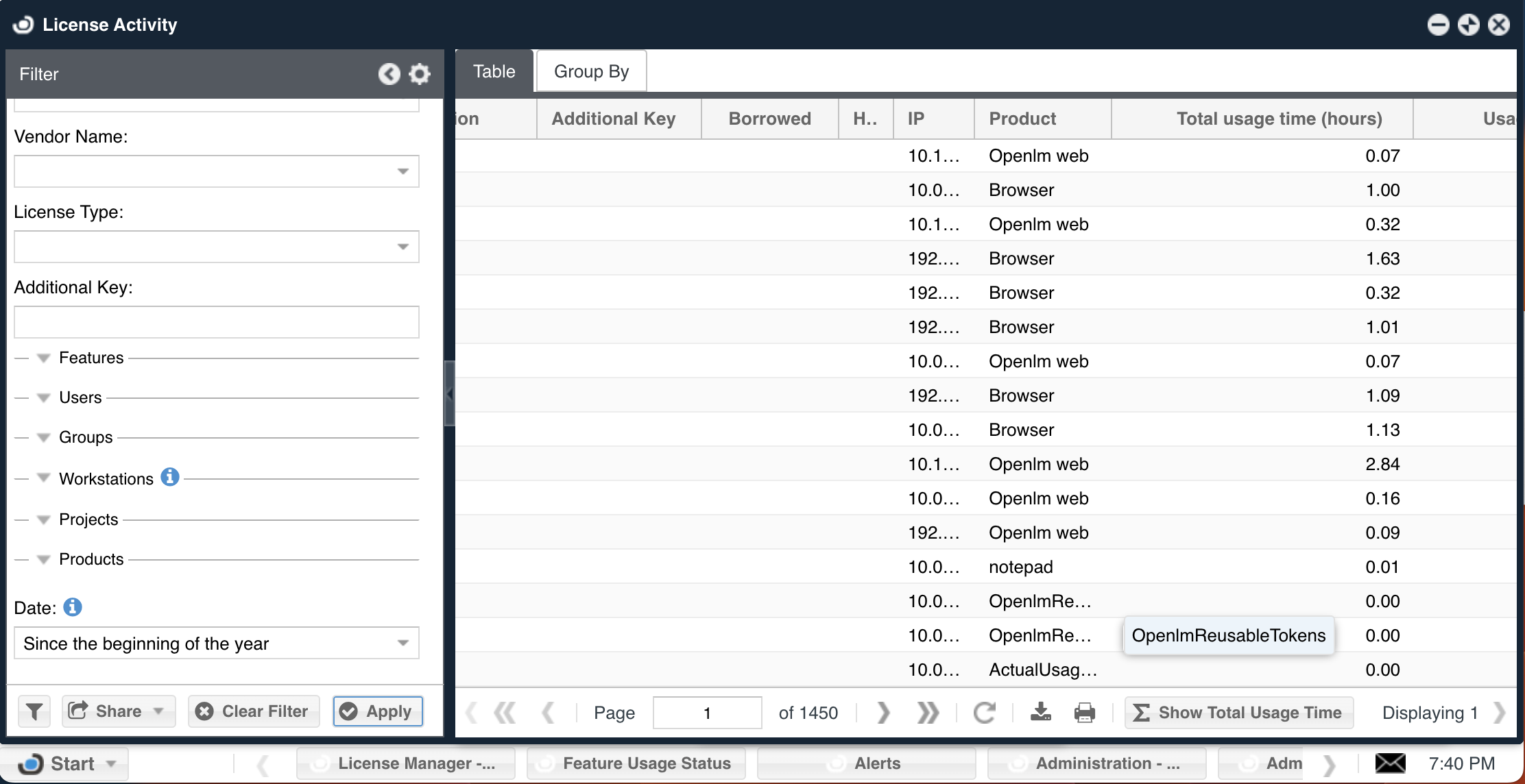 OpenLM reports all aspects of license usage e.g. license inventory, license usage, users, and workstations. System administrators often find the IP address of active workstations important, for example, to locate the domain of such workstations.