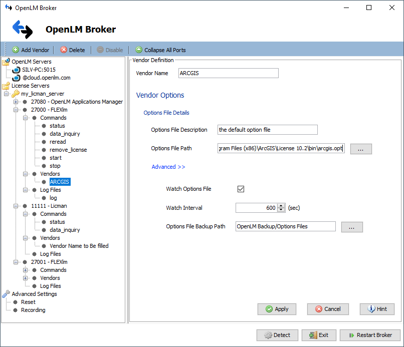 - You will need to have the OpenLM Broker installed on one of the FlexLM license managers you're already monitoring. It does not matter which one. See the required configuration in the image below.