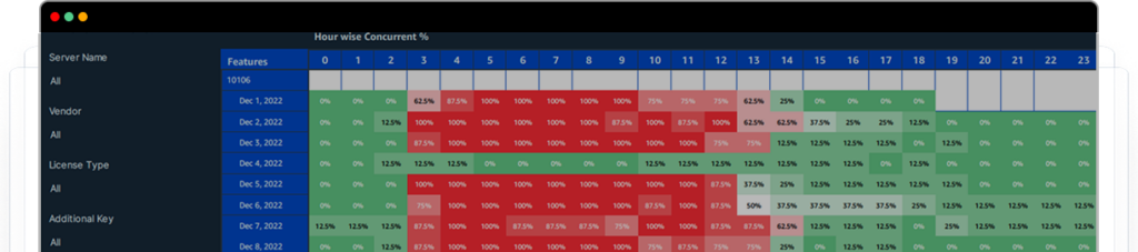 Track logs of every license check-out and check-in. This allows analysis of historical usage patterns to determine who used what license, when, from where, and for how long.