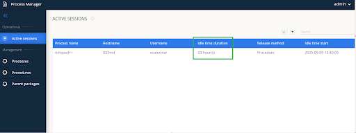 Even before a minute is up, you’ll see the idle time calculating from zero in the Process Manager. Once a process hits that one-minute threshold, the system flags it as idle and updates your reports. In the “Currently Consumed” view (Image 3), that one-minute idle period is reflected, making it easy to see which sessions are active and which are not.