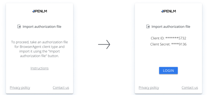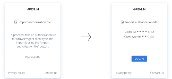 Take the authorization file for the BrowserAgent client type and import it with the “Import authorization file” button.