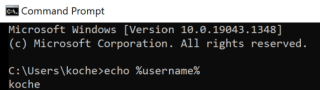 To find username open up the command line interface (press Win + S, type in cmd and select the first app that appeared) and write echo %username%
