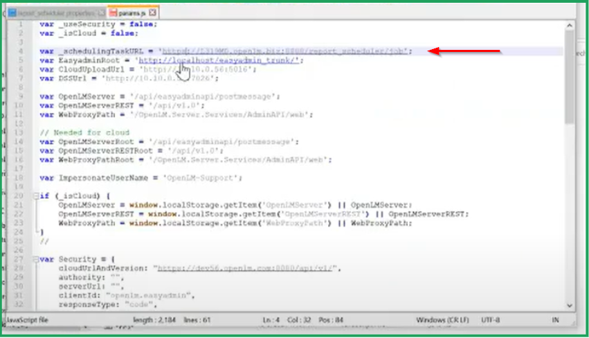 Param.js File Configuration to connect OpenLM SLM (EasyAdmin) with Report Scheduler