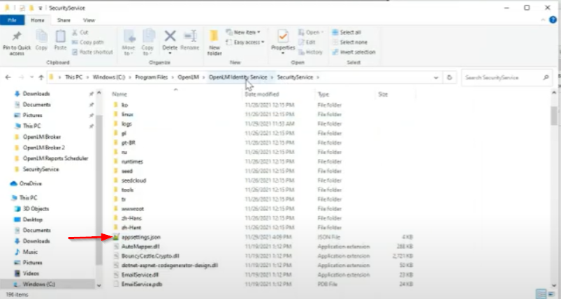 - Navigate to the appsettings.json file of OpenLM Identity Service.