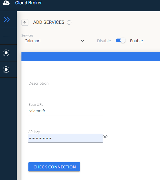 - Add Credentials: In the OpenLM Cloud Broker dashboard, find the Calamari integration and enter the base URL and API Key.
