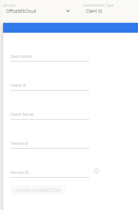 OpenLM Cloud Broker ダッシュボードで Office 365 / Azure 連携を選択し、Client ID、Client Secret、Tenant ID、Service ID を入力します。