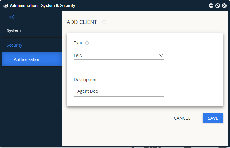 1. Select the Client type from the drop-down list - DSA. Click Save.