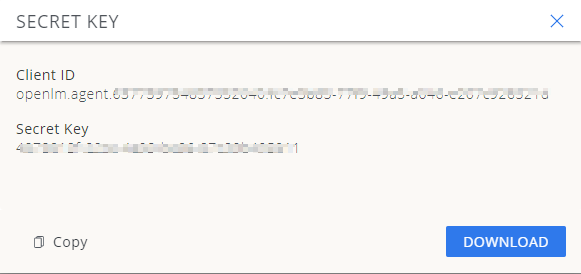 - Obtain the JSON Authorization File from your Cloud Portal account by accessing https://cloud.openlm.com/portal/products → Identity & Access Management(IAM)→Client Authorization files→Add Client. Select the Client type - Agent and type in a descriptive name. Click Save. then download the Authorization JSON file. (You will need this authorization file in step 3).