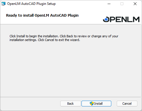 The installation file can be obtained from OpenLM sales or the download area of the website (visit https://www.openlm.com/download/ and locate the AutoCAD Plugin link).
