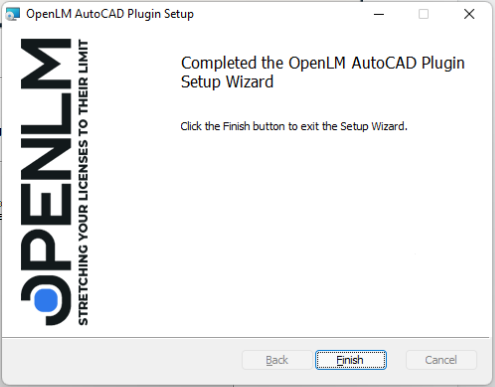 The following document describes the installation process for the AutoCAD Plugin. AutoCAD Plugin is a software component designed and developed by OpenLM to carefully save the users' work, close AutoCAD, and release the license. Take note the Plugin cannot work with the OpenLM WorkstationAgent installed on the same machine. The Autocad Plugin works With OpenLM Cloud Server only. By default, the program will be installed at C:ProgramDataAutodeskApplicationPluginsOpenLM_AutoCAD_Plugin.bundle.