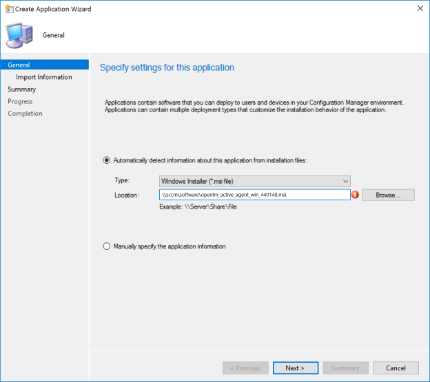 - Locate the Workstation Agent installer (OpenLM_Agent_Installer_###.msi) on the SCCM server or on a network share to be sure it is accessible by that server.
