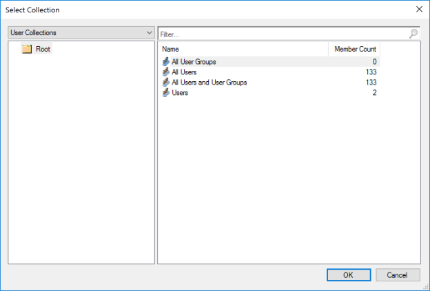 - [Optional] Use the drop-down list in the upper left part of the "Select Collections" screen. Then navigate to "Device Collections" and choose from the available options that appear in the right part of the screen.