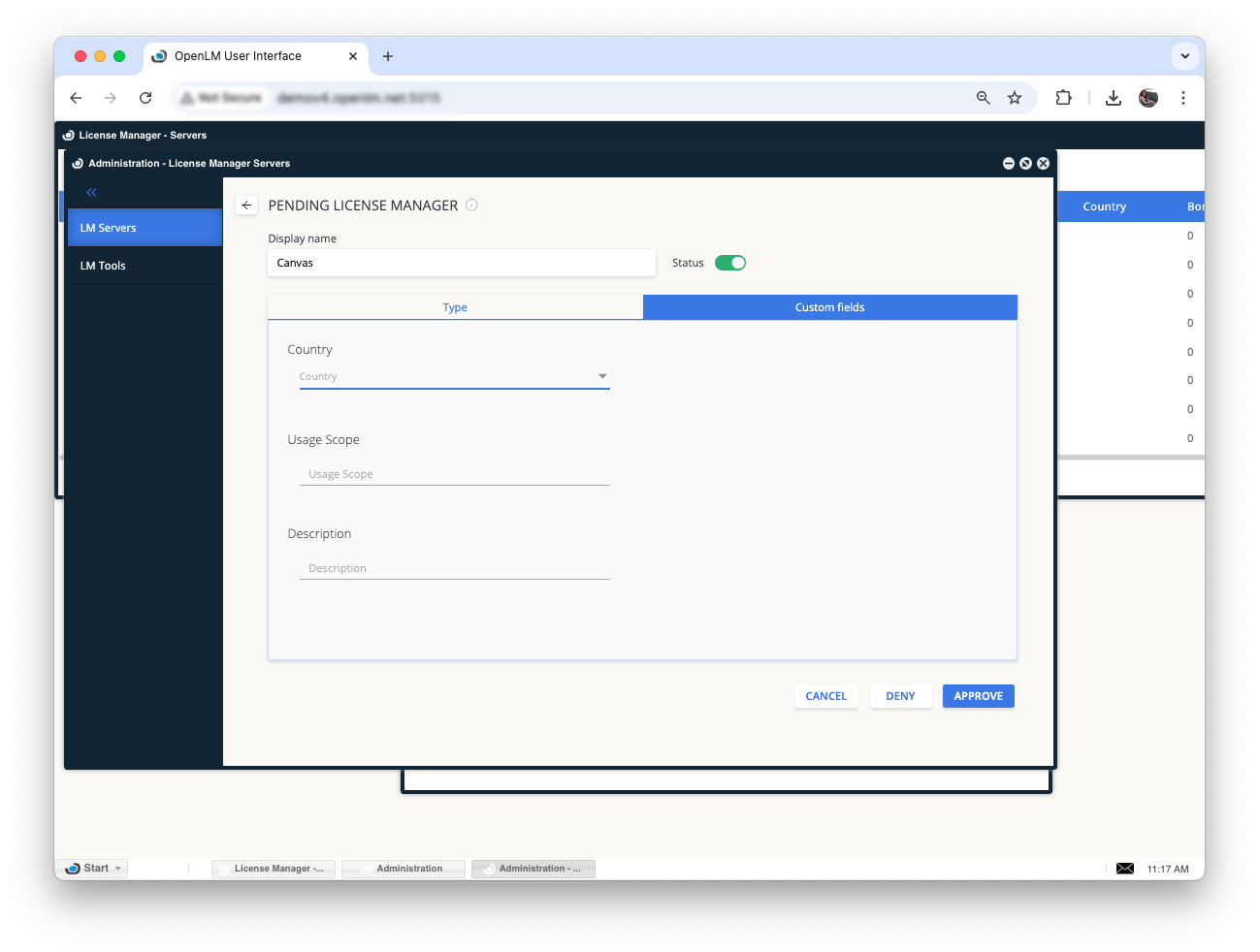5. (Optional) Switch to the Custom Fields tab to add details such as country, usage scope, and description.