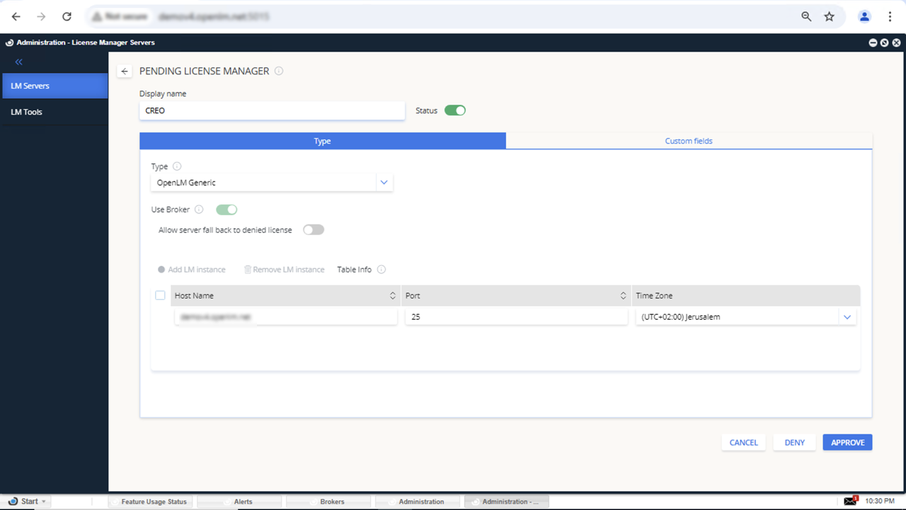 1. Double-click on the pending license manager (displayed as OpenLM Generic).