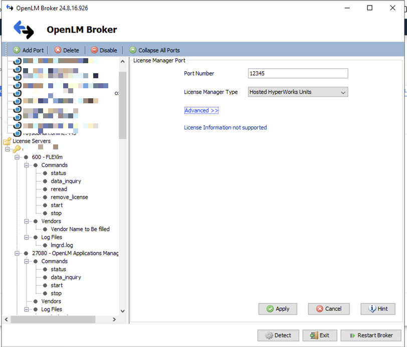 Using the Broker also enables buffered communication and allows remote start and stop of the license manager service.