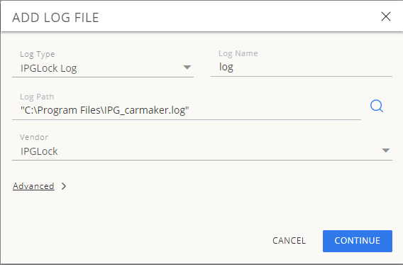 - Go to the Log Files tab, browse to the IPGLock log file, and click Continue.