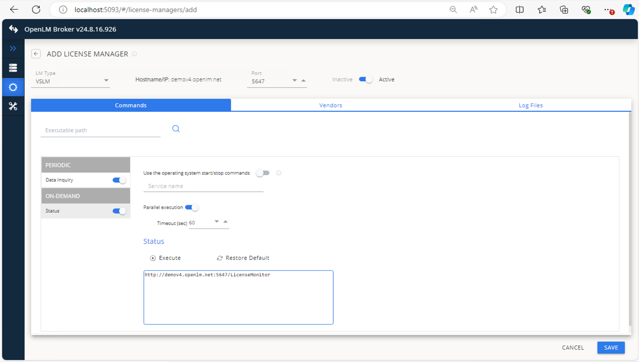 Follow these steps to configure OpenLM to monitor license usage and retrieve statistics from the Kisters VSLM License Manager.