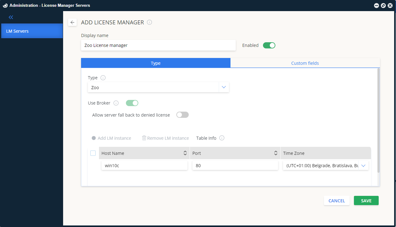 - In EasyAdmin → Start → Widgets → License Manager Servers, verify Zoo appears in the server list.