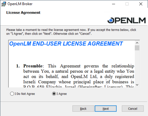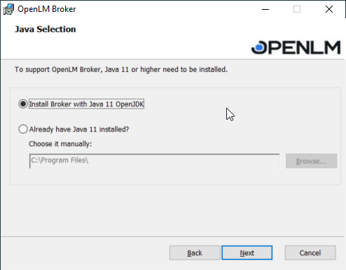 OpenLM Broker is Java-based and can run on any Java-supported platform. The Broker needs to be installed on the same machine as the license manager. As the Java environment is required, Java Runtime Environment (JRE) is bundled as part of the installation (available only for the Broker installation). Before starting the installation, it is advisable to check the system requirements on the OpenLM website. This document covers the installation of the OpenLM Broker on Windows in both standard wizard installation (see A. Installing OpenLM Broker with the Installation Wizard) and through the silent installation (see B. OpenLM Broker Silent Installation).