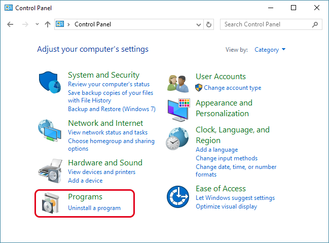 Figure 19: Windows Control Panel with Programs link highlighted.