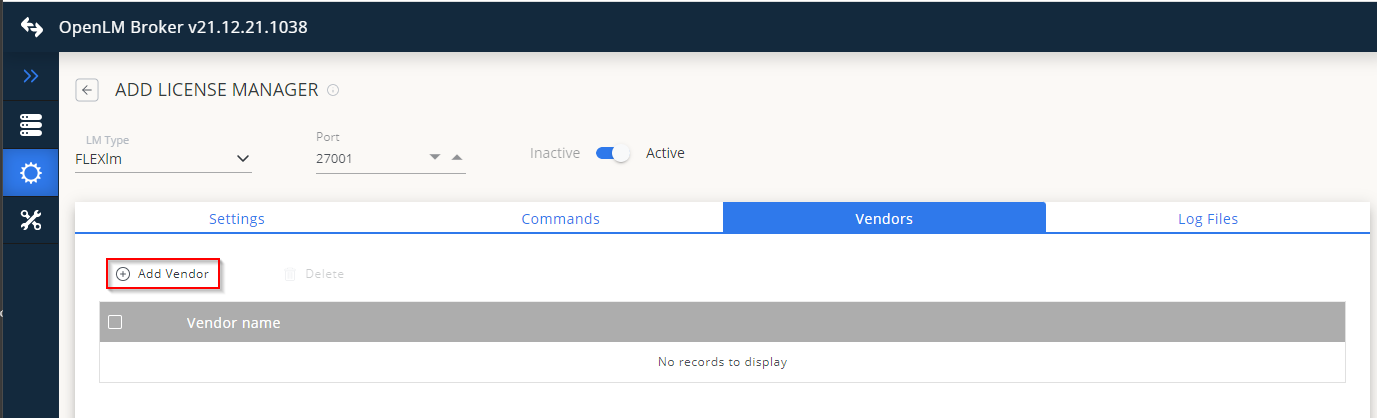 - In the License Managers screen, you can see and add your license managers.