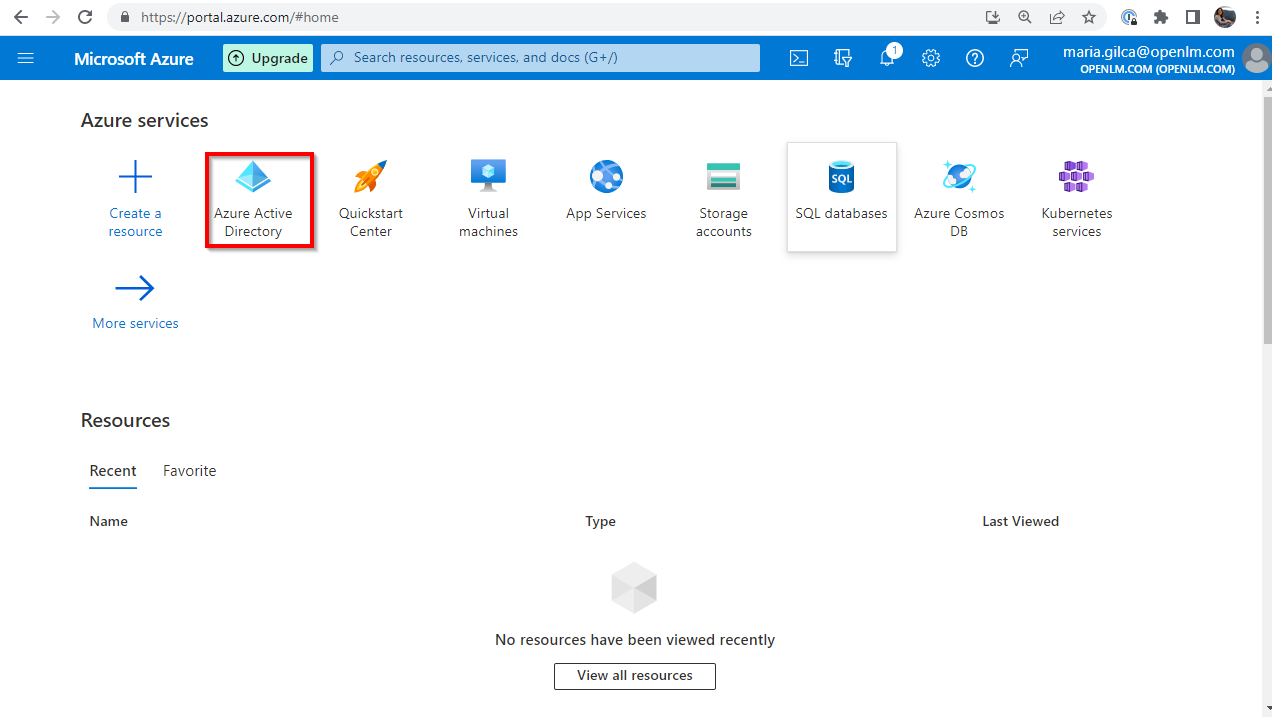 1. Log in to the Azure Portal, link: https://portal.azure.com. Navigate your Azure Active Directory (AAD).