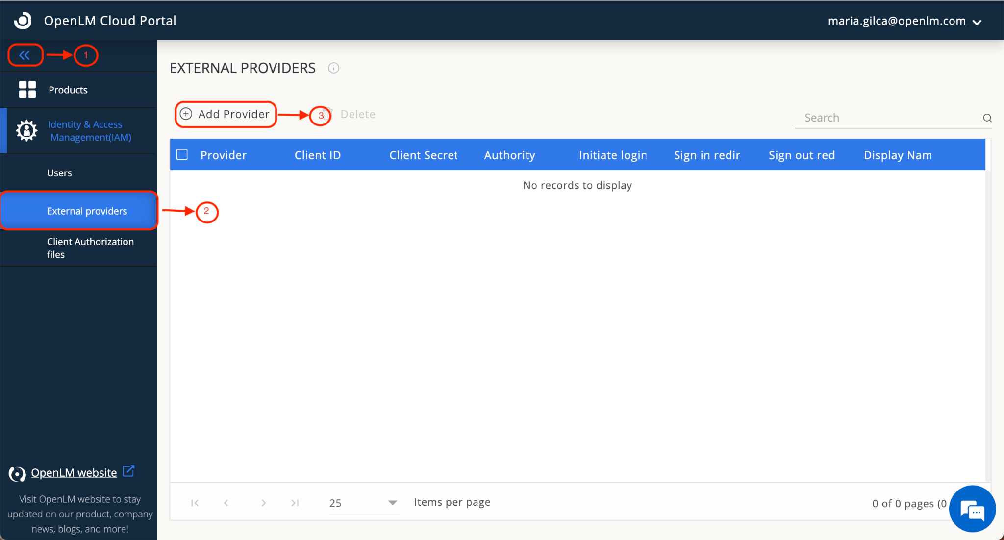 1. Navigate to your OpenLM Cloud Portal→External Providers tab. Click Add Provider.