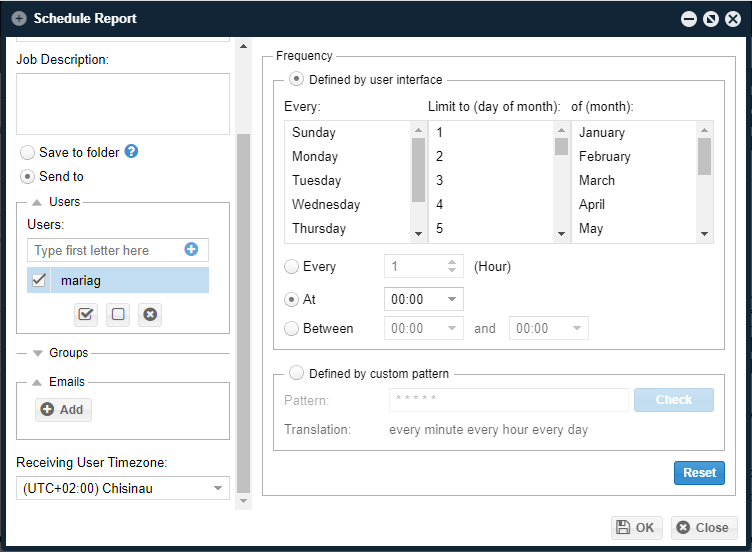 - Frequency of the report (e.g. Every Sunday at 01:00 AM),