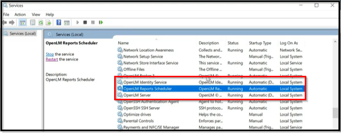 - Restart the Report Scheduler to apply the changes and restart the OpenLM SLM.