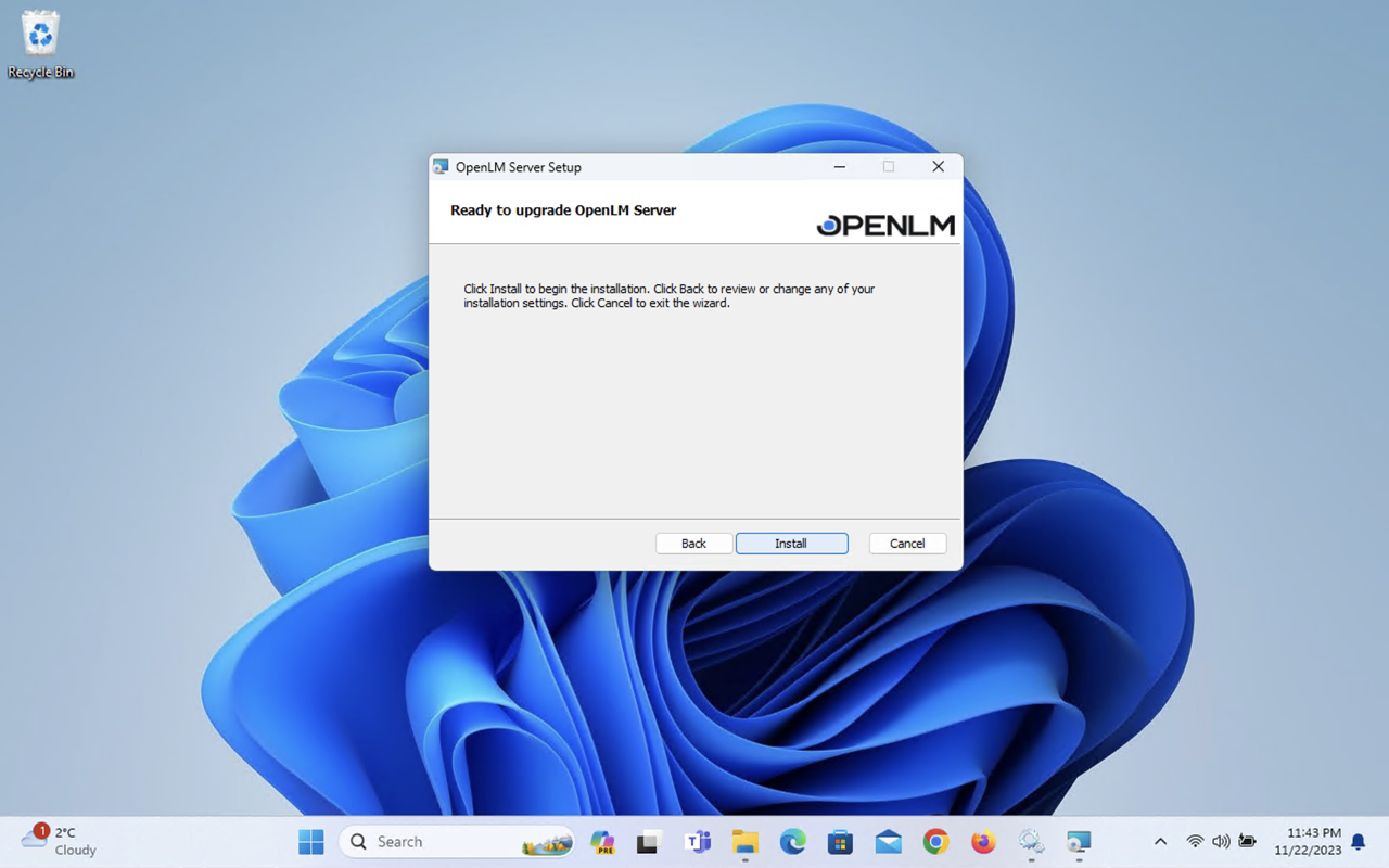 Obtain the latest OpenLM SLM installer (e.g. OpenLM_Server_2x.#.##.##.msi) from our Downloads page.